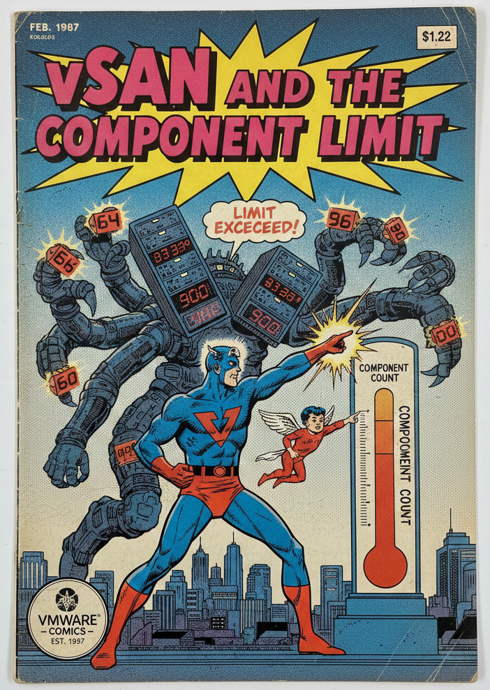 Over the last few years, I’ve not had many discussions about component limits, but recently, these discussions have popped up more frequently, somehow. If you ask a customer what the component limit of vSAN is, some may say 9000 per host (OSA), others will say 27,000 per host (ESA), and some may know the number of the components limit per cluster even. (Documented here, and here.) However, there’s one critical component most people don’t tend to think about. For this post, I am going to focus on vSAN ESA.